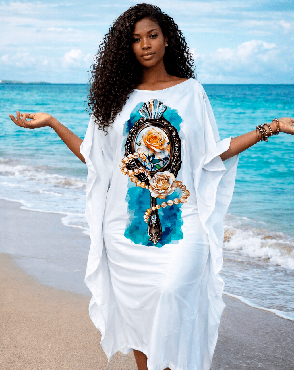 Hoje, expressar o sagrado através do estilo é mais acessível do que nunca. Aqui, celebramos tradição e ancestralidade, que vai muito além do que uma peça pode carregar. Com estampas vibrantes e divertidas, nosso vestido de malha 100% poliéster está disponível para todos os tamanhos, abraçando a diversidade.