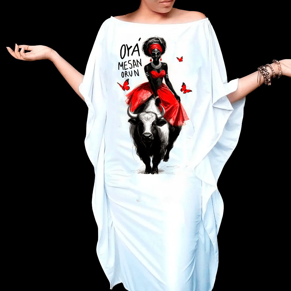 Oyá, a divindade dos ventos e tempestades: delicada como uma borboleta, poderosa como um furacão. Controla os ventos, trazendo mudanças e purificações, enquanto seus raios são a manifestação de sua justiça implacável. Protetora incansável, guia as almas dos falecidos e afasta perigos com sua energia imponente. Iansã é força, é paixão, e acima de tudo: é proteção.
