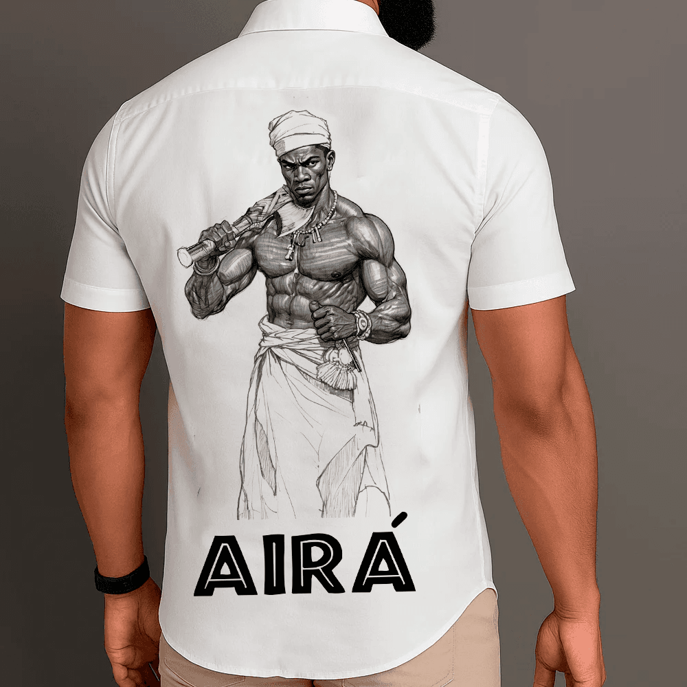 Representando ancestralidade, força e vitórias, nossa camisa social de malha 100% poliéster vai além de ser apenas uma peça de roupa; ela é uma homenagem à história e a força do homem que nunca conheceu derrotas. Com estampas vibrantes que capturam a essência desse orixá, cada camisa se torna um acessório indispensável pra todos os filhos de fé.
