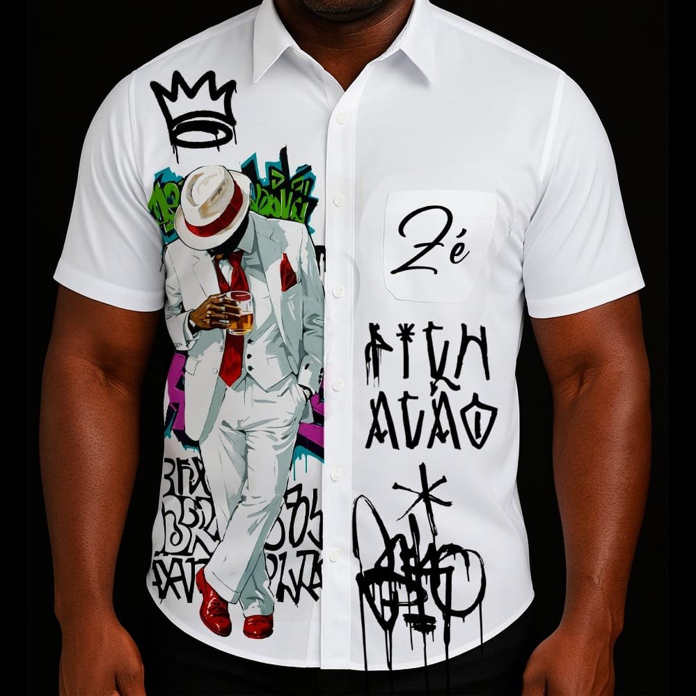 Nossa camisa social 100% poliéster é mais do que apenas uma peça de roupa; é uma reverência à presença e à sabedoria de Zé. Cada peça se torna um símbolo de conexão com a cultura da malandragem, uma homenagem ao poder transformador de Zé na vida de quem tem fé.