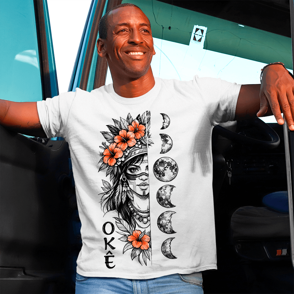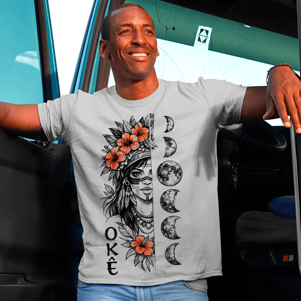 Expressando o sagrado através do estilo, nossa camiseta de malha 100% poliéster é uma homenagem à riqueza espiritual e cultural dos Caboclos, carregando consigo a sabedoria ancestral e a força curativa das florestas.